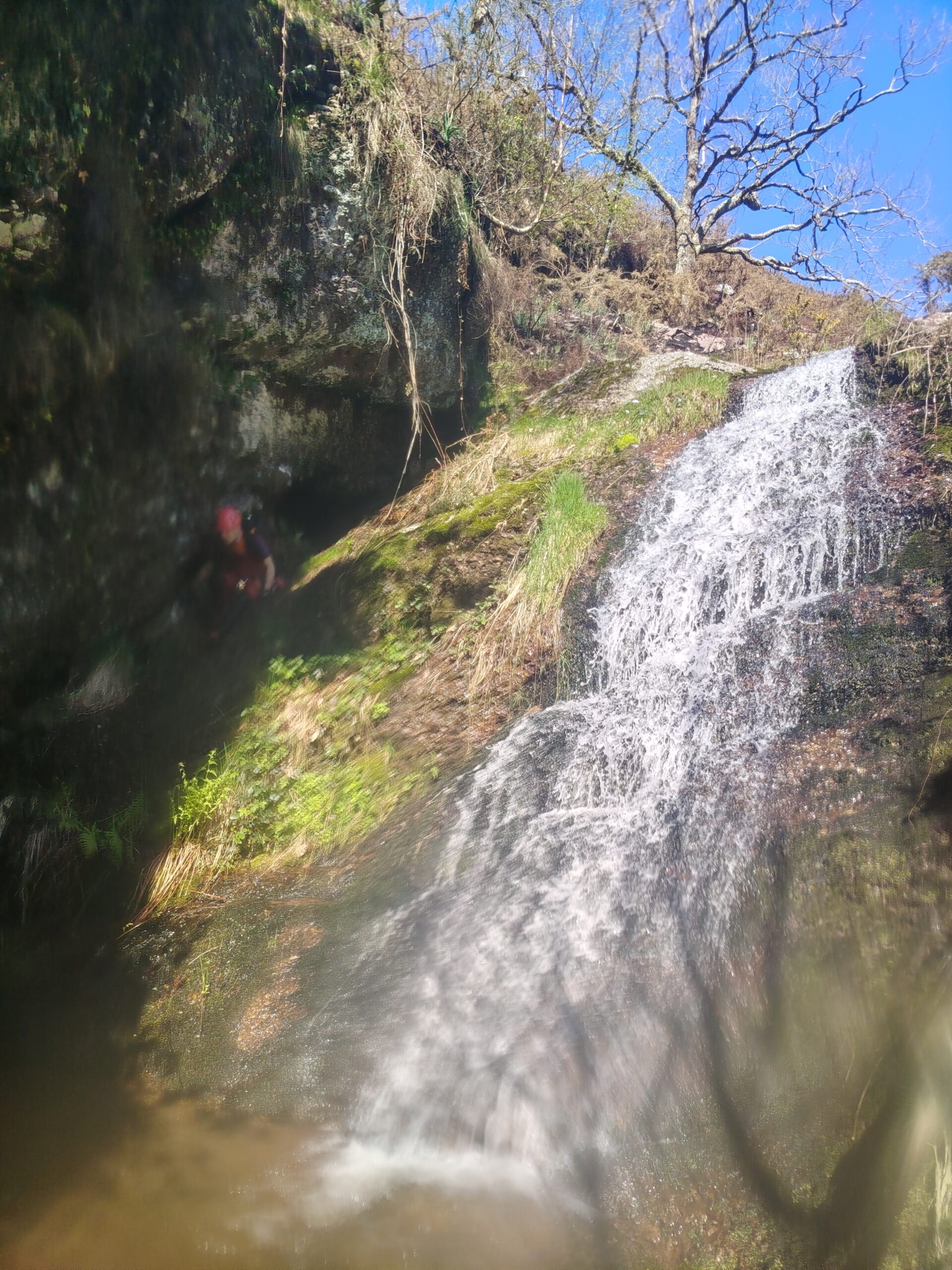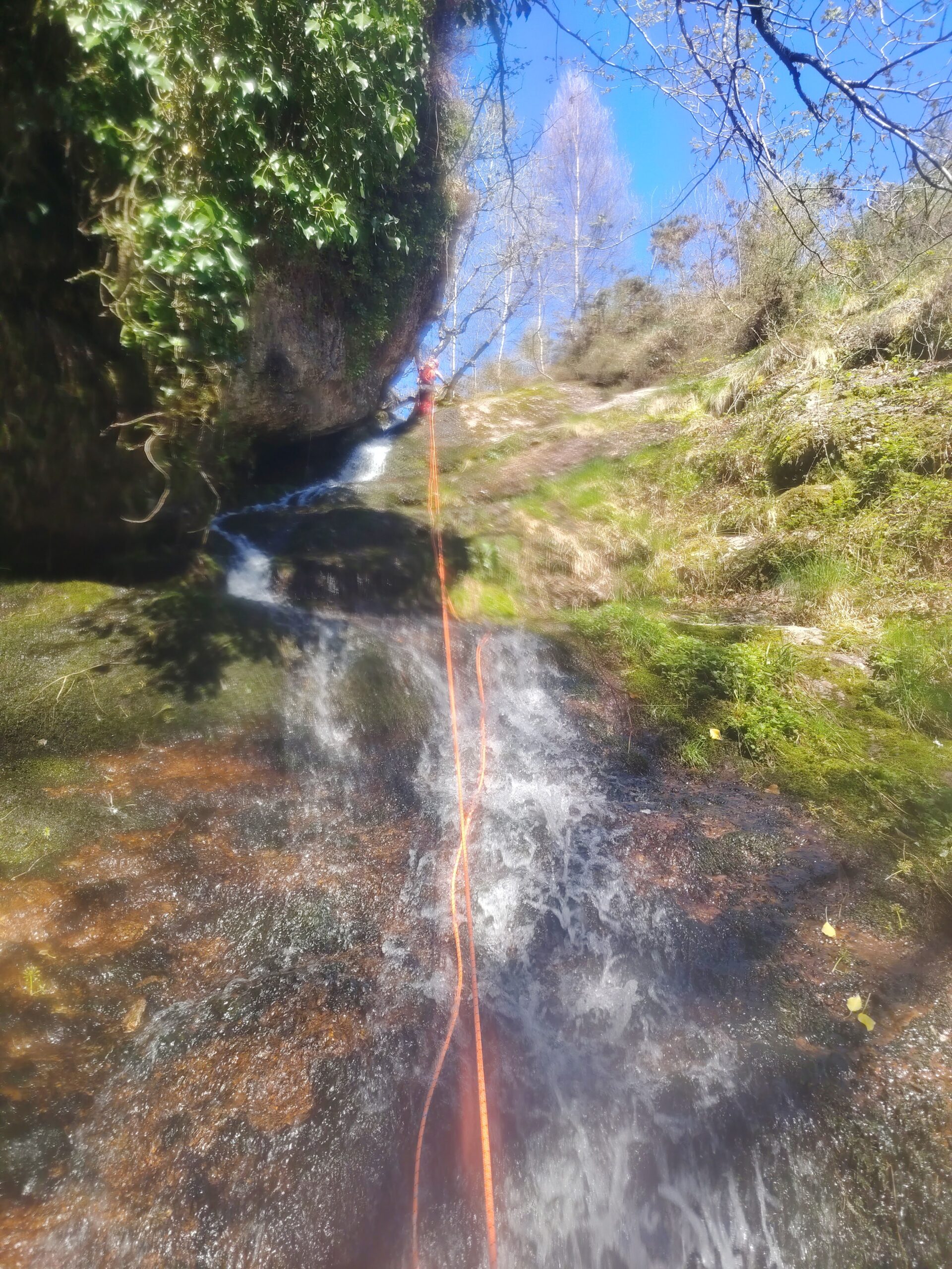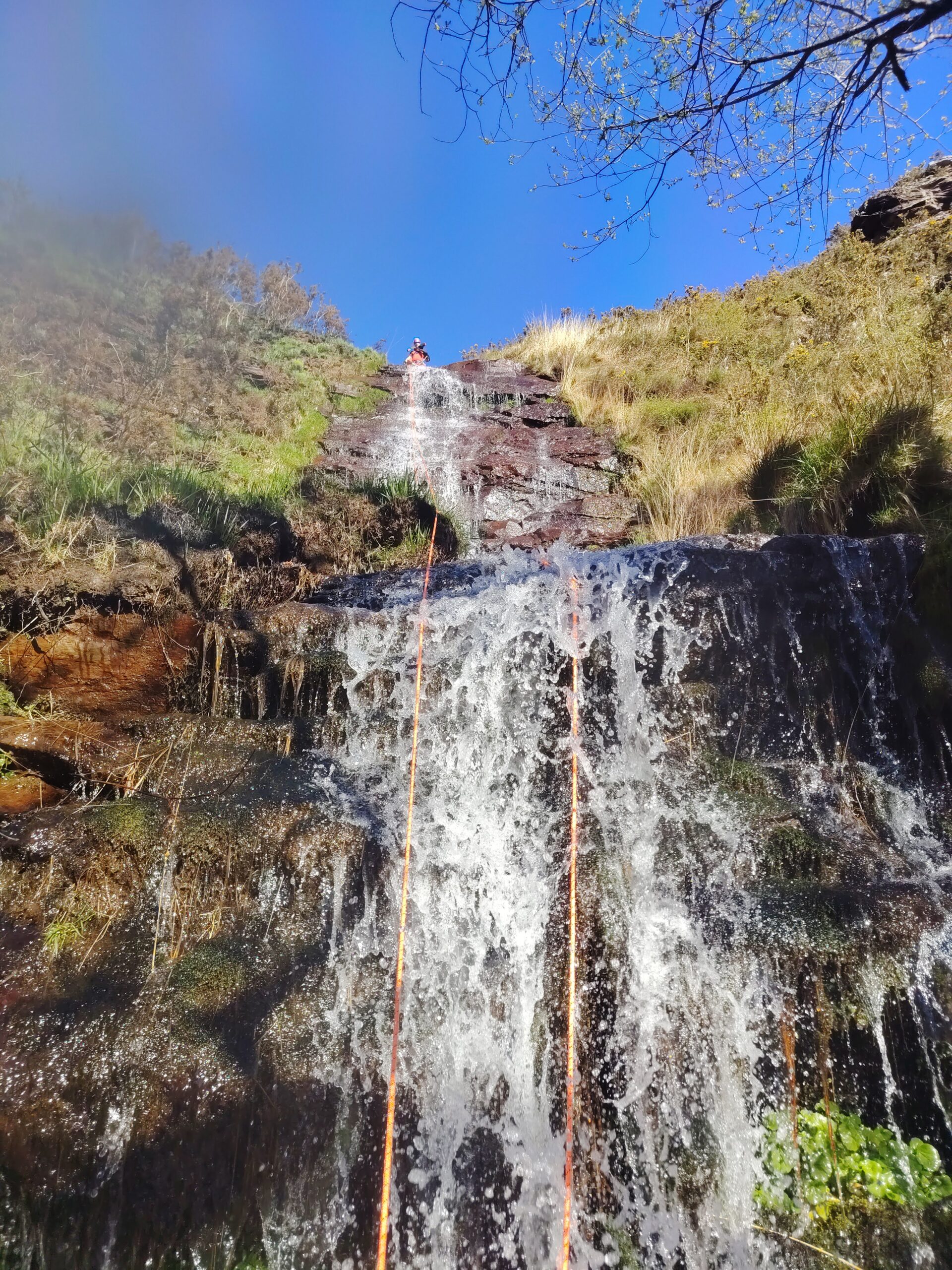 Côté technique : Les monopoints installés lors de l’ouverture étant parfois mal positionnés, nous avons choisi de doubler les ancrages pour sécuriser la descente. Au total, nous avons posé 4 plaquettes inox de 10 avec anneau. Pour pallier les frottements et les risques de blocage de corde, nous avons mis en pratique la technique du débrayable du bas avec nœud en bas sur les 2 premiers rappels.