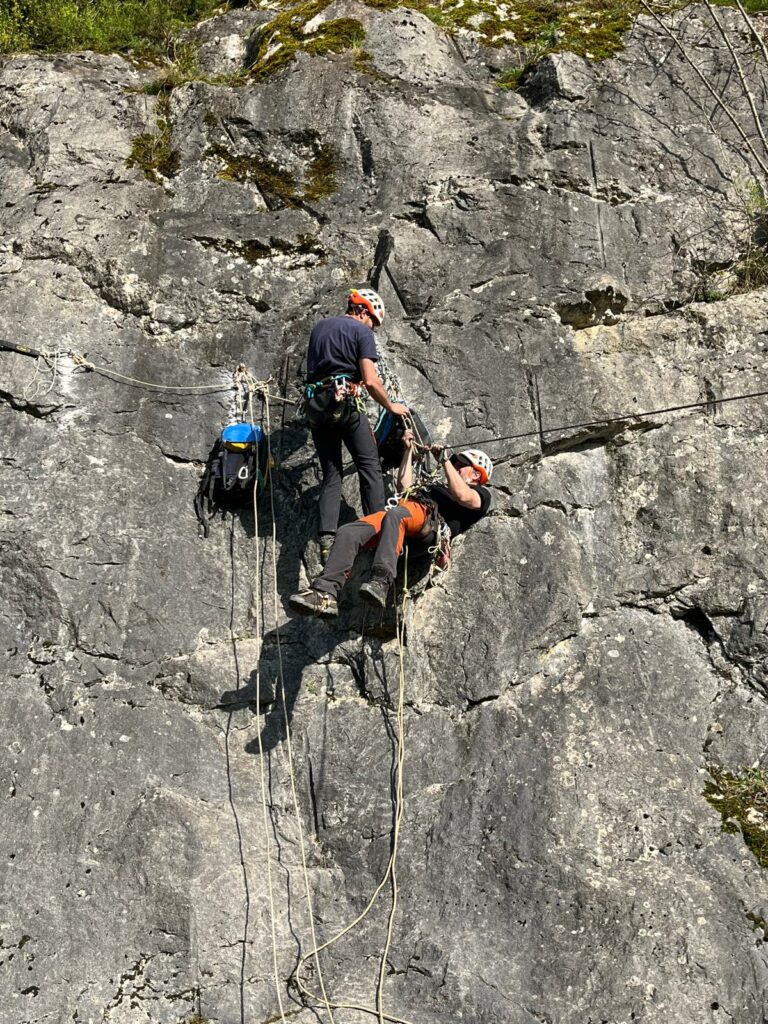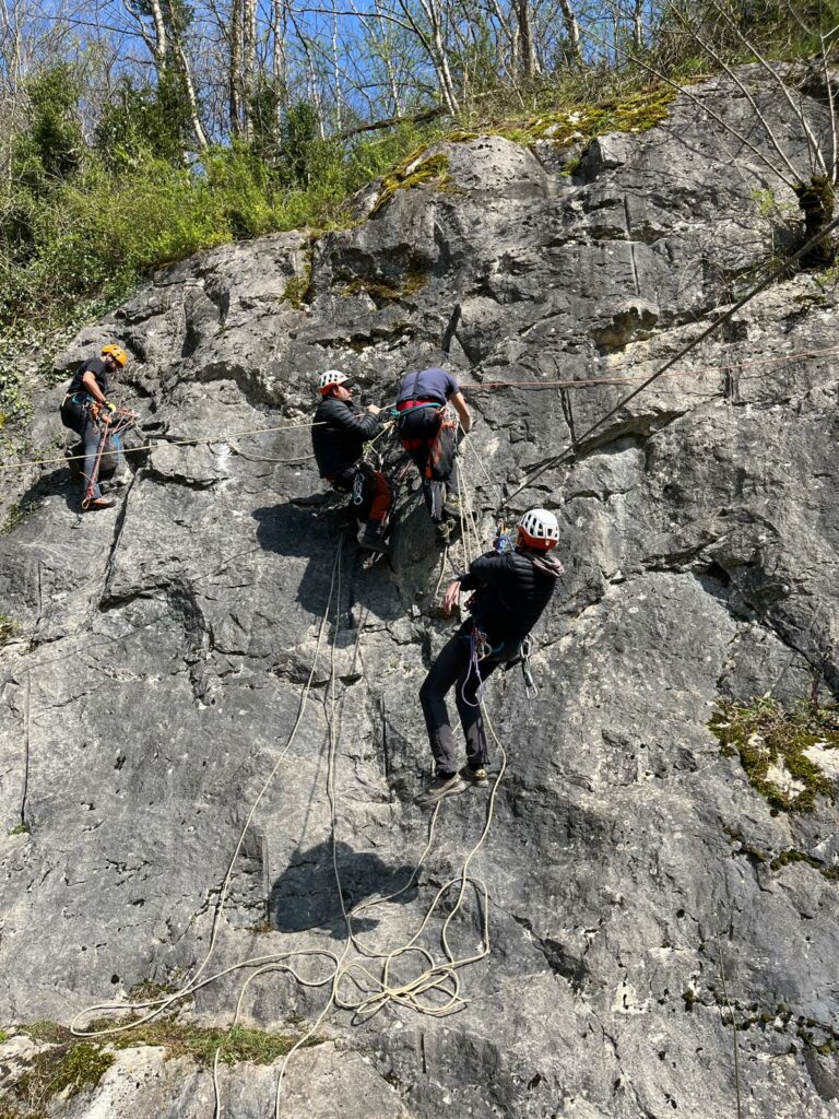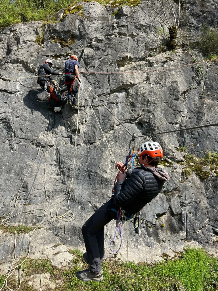 Pour cette 3ème édition organisée par le CSRNA, nous affichons un presque « complet » avec 7 stagiaires sur 8. On ne sait pas si c’est l’amour de la manip ou la peur de rester coincé sur une corde, mais l’excitation était palpable. Au programme, un menu gastronomique du secours sur corde : du Bloqueur Sauveur en entrée, des Remontées de victimes à toutes les sauces (débrayable, corde annexe) et un festival de Coupés de corde. On a mis un point d’honneur sur la Remontée de victime méthode rapide. Note technique : On l’appelle « rapide » parce qu’elle est censée l’être sur le papier. Dans la vraie vie, c’est surtout le moment où le cardio du sauveteur explose et où la victime a le temps de se demander si elle a bien éteint le gaz avant de partir.